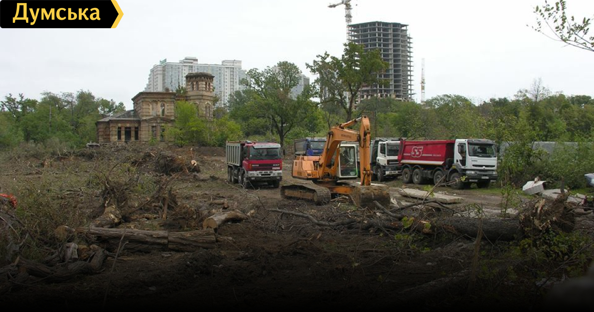 Строители сносят деревья вокруг старинного особняка в Аркадии