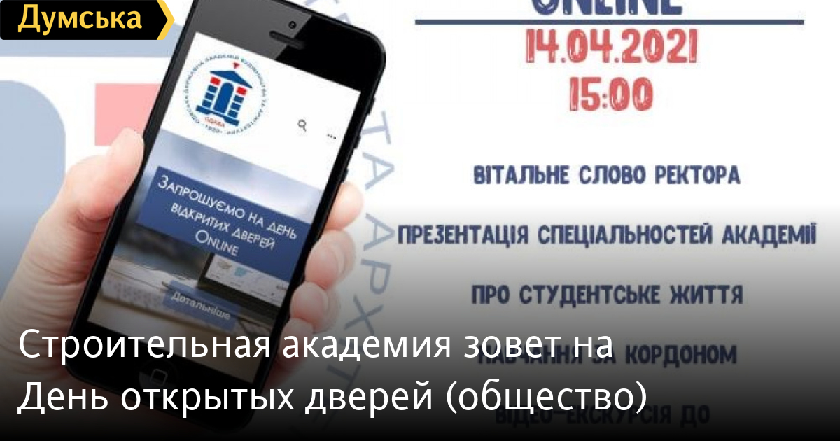 День открытых дверей в режиме онлайн состоится 14 апреля в Одесской государственной академии строительства и архитектуры. Абитуриенты смогут побывать на видео-экскурсии в строительно-технологическом институте и узнать все о специальностях академии. Отдельным блоком будут презентованы возможности обучения за границей. Начало мероприятия в 15:00. Зарегистрироваться можно по ссылке. Конференция в Google Meet здесь. Одесская государственная академия строительства и архитектуры — один из ведущих технических вузов Украины. Занимает 1-е место в рейтинге строительных и транспортных высших учебных заведений Украины и 39-е место (из 200) в рейтинге высших учебных заведений. Сейчас в состав ОГАСА входят следующие учебные структурные подразделения: - Архитектурно-художественный институт; - Инженерно-строительный институт; - Строительно-технологический институт; - Институт инженерно-экологических систем; - Факультет гидротехнического и транспортного строительства; - Факультет экономики и управления в строительстве; - Центр подготовки специалистов для зарубежных стран; - Центр доакадемической подготовки; - Центр последипломного образования; - Научно-исследовательский институт «Архитектурных исследований и проектирования»; - Проектно-технологический институт; - Научно-исследовательский институт геотехники им. В. Н. Голубкова; - Научно-исследовательский институт «НИИГаз»; - Научно-исследовательский институт «Материаловедения»; - два специализированных ученых совета по защите докторских и кандидатских диссертаций. СМЕРТЬ РОССИЙСКИМ ОККУПАНТАМ! Заметили ошибку? Выделяйте слова с ошибкой и нажимайте control-enter |