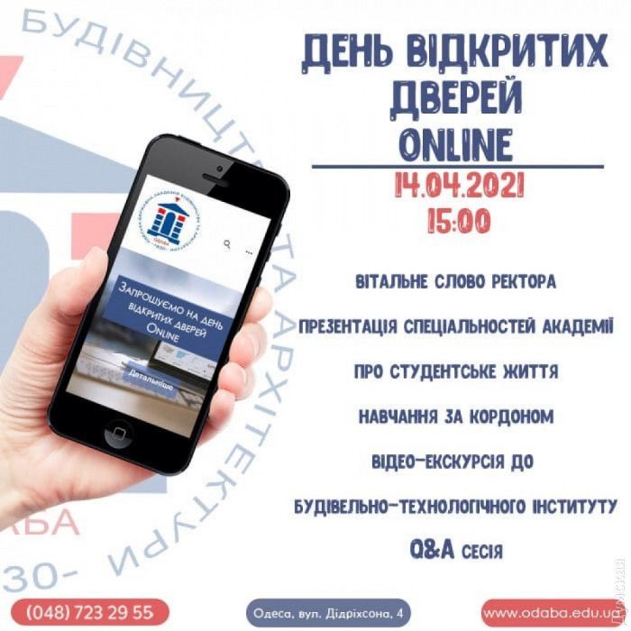 День открытых дверей в режиме онлайн состоится 14 апреля в Одесской государственной академии строительства и архитектуры. Абитуриенты смогут побывать на видео-экскурсии в строительно-технологическом институте и узнать все о специальностях академии. Отдельным блоком будут презентованы возможности обучения за границей. Начало мероприятия в 15:00. Зарегистрироваться можно по ссылке. Конференция в Google Meet здесь. Одесская государственная академия строительства и архитектуры — один из ведущих технических вузов Украины. Занимает 1-е место в рейтинге строительных и транспортных высших учебных заведений Украины и 39-е место (из 200) в рейтинге высших учебных заведений. Сейчас в состав ОГАСА входят следующие учебные структурные подразделения: - Архитектурно-художественный институт; - Инженерно-строительный институт; - Строительно-технологический институт; - Институт инженерно-экологических систем; - Факультет гидротехнического и транспортного строительства; - Факультет экономики и управления в строительстве; - Центр подготовки специалистов для зарубежных стран; - Центр доакадемической подготовки; - Центр последипломного образования; - Научно-исследовательский институт «Архитектурных исследований и проектирования»; - Проектно-технологический институт; - Научно-исследовательский институт геотехники им. В. Н. Голубкова; - Научно-исследовательский институт «НИИГаз»; - Научно-исследовательский институт «Материаловедения»; - два специализированных ученых совета по защите докторских и кандидатских диссертаций. СМЕРТЬ РОСІЙСЬКИМ ОКУПАНТАМ! Помітили помилку? Виділяйте слова з помилкою та натискайте control-enter |