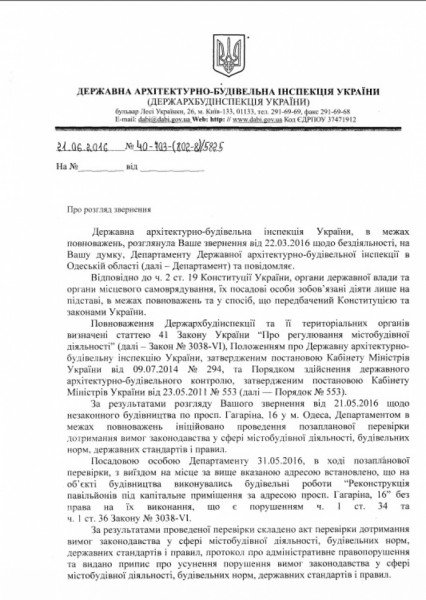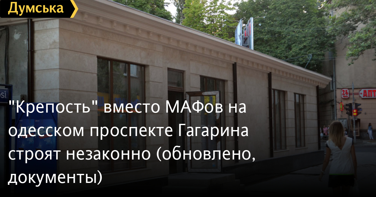 В то же время местные жители, давно окрестившие сооружение «крепостью», обратились в Государственную архитектурно-строительную инспекцию Украины с жалобой на местных чиновников, которые упорно закрывают глаза на стройку. Проверив информацию, сотрудники ГАСКа подтвердили, что реконструкция павильонов в капитальное помещение проводится незаконно. Застройщику выдано предписание об устранении нарушений, а также наложен штраф в размере 8500 гривен.