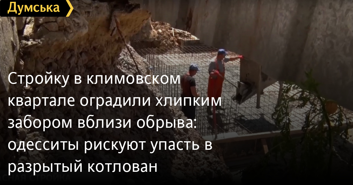 Стройку в «климовском квартале» оградили хлипким забором вблизи обрыва: одесситы рискуют упасть в разрытый котлованВ печально известном «климовском квартале» снова проблемы. Жители дома № 90 по улице Екатерининская, 90 страдают от стройки, которая проходит по соседству. Одесситы говорят, что хлипкий забор стоит прямо на обрыве. Из-за стройки асфальтное покрытие треснуло, и при малейшем ливне ограждение запросто может сползти вниз. Местные жители переживают за жизни своих детей. «У меня маленький ребенок. Малейший ураган — забора не будет. Или ребенок облокотится на забор, не дай бог, упадет в яму, где теперь не только лужи, но и штыри. Мне страшно, мне реально страшно за детей»,- говорит Анна — жительница дома №90 по улице Екатерининской. Строители оставили местным три метра и целых семь сантиметров придомовой территории. В случае ЧП здесь не проедет ни одна специальная служба. «Расстояние не позволяет проехать ни пожарной машине, ни скорой, просто потому что ворота находятся сбоку. Здесь нет места, чтобы она смогла свернуть. Даже если бы она смогла здесь протиснуться, это невозможно, так как она рискует там провалиться колесам», — сетует жительница Екатерининской, 90 Галина. Как сообщают местные, стройка начинается в семь утра и длится до самого вечера. И так на протяжении года. За это время застройщики не удосужились рассказать, что же появится за этим забором. Как рассказывают жители Екатерининской, 90, они обращались во все одесские инстанции — ГАСК, трижды писали к мэру, в Приморскую райадминистрацию. А в ответ — одни отписки. Если местные власти не обратят внимания на проблему, возмущенные жители собираются обращаться в администрацию президента. СМЕРТЬ РОССИЙСКИМ ОККУПАНТАМ! Заметили ошибку? Выделяйте слова с ошибкой и нажимайте control-enter |