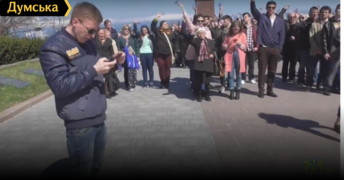 Накануне Дня освобождения Одессы представители «ОппоБлока» согнали массовку в парк Шевченко к Памятнику неизвестному матросу, чтобы снять ролик. Видео «бэкстейджа» съемок выложили на странице патриотической организации ГО «Обериг». На записи видно, что участников отмечают в специальных списках. Большинство массовки составляли студенты, которые не имели понятия о целях мероприятия.