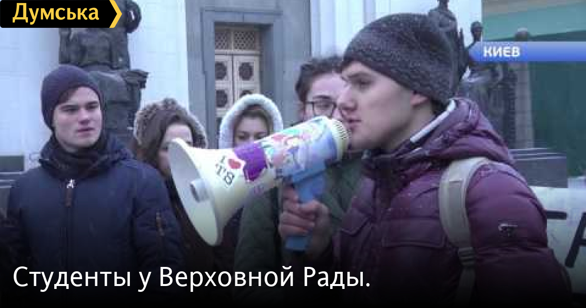 В среду в Киеве у стен Верховной рады прошел пикет студентов. Их собралось около 20 человек, количество увеличилось почти вдвое. Они требовали отменить новоиспеченный законопроект 5130. СМЕРТЬ РОССИЙСКИМ ОККУПАНТАМ! Заметили ошибку? Выделяйте слова с ошибкой и нажимайте control-enter Думская ТВ. Сюжеты: