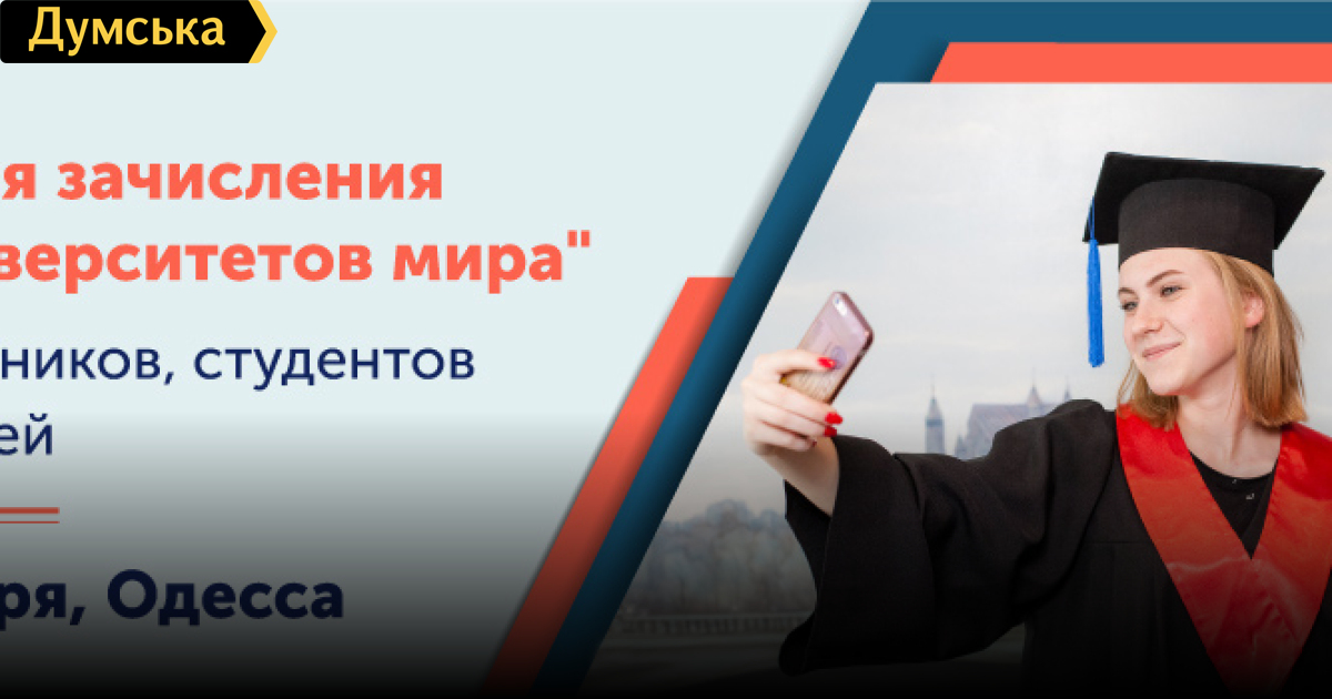 Study.UA приглашает одесситов на День открытых дверей в Академию английского языка (на правах рекламы)9 сентября в 10:00 в Академии английского языка STUDY Academy пройдет день открытых дверей, на котором все желающие смогут узнать о возможности поступления в 80 англоязычных университетов в десяти странах мира. Приглашаются школьники 10-11 классов, студенты 2-5 курсов, родители школьников и студентов. Дни открытых дверей – это возможность первыми узнать условия зачисления на новые программы английского языка Академии, познакомиться с преподавателями и выбрать удобное расписание занятий. В STUDY Academy ученики не только изучают английский язык с преподавателями из Великобритании и США, но и получают академические знания и карьерные навыки, обучаются по программе средней школы Канады, готовятся к дальнейшему образованию в Украине или гарантировано поступают в престижные зарубежные университеты. В программе: - презентация программ академической подготовки и изучения английского языка для школьников 6-12 и 13-17 лет; - презентация программ для студентов и взрослых: английский и подготовка к международной карьере; - бесплатное тестирование на определение уровня английского языка; - индивидуальное общение с преподавателями, подбор программы и расписания занятий; - консультации экспертов по международному образованию касательно образования за границей. Приходите на семинар 9 сентября в 14:00 и узнайте о первой в Украине академической программе, которая готовит школьников и студентов к поступлению на бакалавриат и на магистратуру за границей. Academic Start гарантирует зачисление в 80 англоязычных ВУЗов Канады, США, Великобритании и Европейского союза. Участники программы Academic Start: • проходят подготовку к сдаче международных экзаменов IELTS; • получают академическую подготовку к учебе за границей; • гарантированно* получают документы о зачислении в выбранный партнерский университет; • оформляют студенческую визу. Весь процесс подготовки, зачисления в университет и оформления студенческой визы проводится без отрыва от обучения в Украине, благодаря чему вы не теряете время и можете продолжить высшее образование за границей сразу после окончания школы или вуза. День открытых дверей состоится 9 сентября в офисе STUDY.UA по адресу: ул. Базарная, 5/3, ЖК «Капитан», офис 1. Регистрация на сайте или по телефонам: (048) 737-66-66, 097 807 66 66 СМЕРТЬ РОСІЙСЬКИМ ОКУПАНТАМ! Помітили помилку? Виділяйте слова з помилкою та натискайте control-enter |