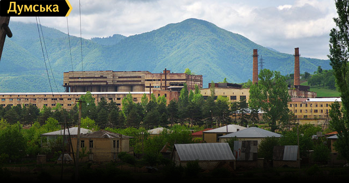 Пасторальный пейзаж: разрушенные советские заводики на фоне отрогов Кавказских гор.
