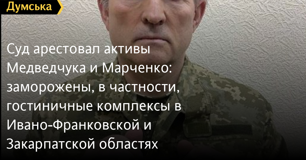 Суд заарештував активи Медведчука та Марченко: заморожені, зокрема, готельні комплекси в Івано-Франківській та Закарпатській областяхЗа ініціативи СБУ заарештовано додаткові активи Віктора Медведчука та його дружини Оксани Марченко, якими вони керували з росії. Суд заарештував, зокрема, корпоративні права компаній зі статутним капіталом 38 млн гривень, повідомляють у Службі безпеки України. Крім того, заморожено 1,3 млн гривень на банківських рахунках. Заарештовано і дві земельні ділянки загальною площею вісім гектарів та два готельні комплекси площею 4,5 та 2,4 тисячі квадратних метрів в Івано-Франківській та Закарпатській областях. За даними СБУ, бенефіціарами активів є громадянин росії Віктор Медведчук та його дружина Оксана Марченко. Рішення суду ухвалено за матеріалами Служби безпеки, яка документує та викриває легалізацію в Україні російських грошей, спрямованих на фінансування антиукраїнської діяльності. Схема полягала у заведенні коштів з російських банків на зареєстровану в Україні фірму, власником якої є громадянин росії. Українські спецслужби отримали беззаперечні докази управління компаніями з росії та встановили всі фірми-прокладки цього ланцюжка. Досудове розслідування ведеться за ч. 1 ст. 110-2 (фінансування дій, вчинених з метою насильницької зміни чи повалення конституційного ладу або захоплення державної влади, зміни меж території чи державного кордону України) та ч. 2 ст. 209 - (відмивання майна, одержаного злочинним шляхом). СМЕРТЬ РОСІЙСЬКИМ ОКУПАНТАМ! Помітили помилку? Виділяйте слова з помилкою та натискайте control-enter |