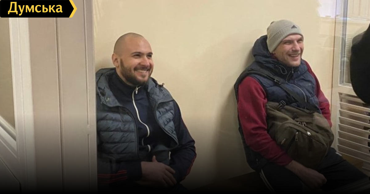 Двое бывших бойцов полка «Азов» Станислав Руденко и Юрий Гаврилюк, которые 5 июля 2018 года избили и ударили ножом лидера одесской ячейки «Автомайдана» Виталия Устименко, сегодня получили условные сроки и были освобождены в зале суда. Как сообщает корреспондент «Думской», Приморский райсуд Одессы приговорил их к 4 годам лишения свободы с двухгодичным испытательным сроком. Также они должны выплатить пострадавшему 25 тысяч гривен компенсации морального ущерба. После более двух лет в СИЗО подсудимых освободили в зале суда. Коллегия судей переквалифицировала дело с ч.1 ст.115 УК Украины (покушение на убийство) на более «мягкие» статьи – ч.4 ст.296 и ч.1 ст.263 (хулиганство и незаконное обращение с оружием). Следствие не смогло доказать, что нападавшие действительно собирались убить Устименко или предоставить доказательства того, что они совершили покушение по заказу. Устименко получил легкие телесные повреждения, по мнению судей, экс-«азовцы» напали на него из хулиганских целей. В качестве смягчающего обстоятельства суд принял во внимание то, что оба фигуранта участвовали в боях на Донбассе и были отмечены наградами. Отягощающим фактором было то, что в 2015 году Руденко получил условный срок за кражу трех боевых пистолетов Макарова, а у Гаврилюка во время обыска обнаружили боевые патроны. Устименко заявил, что не согласен с приговором и подаст апелляционную жалобу. Фото — Суспільне. Одеса СМЕРТЬ РОСІЙСЬКИМ ОКУПАНТАМ! Помітили помилку? Виділяйте слова з помилкою та натискайте control-enter