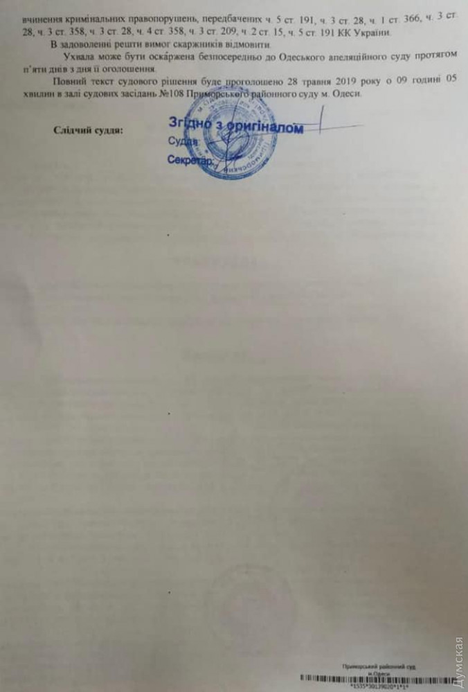 Напомним, это уголовное производство было открыто по факту незаконного завладения 200 млн грн и покушения на завладение 370 млн грн при строительстве глубоководного выпуска сточных вод от станции биоочистки «Северная».