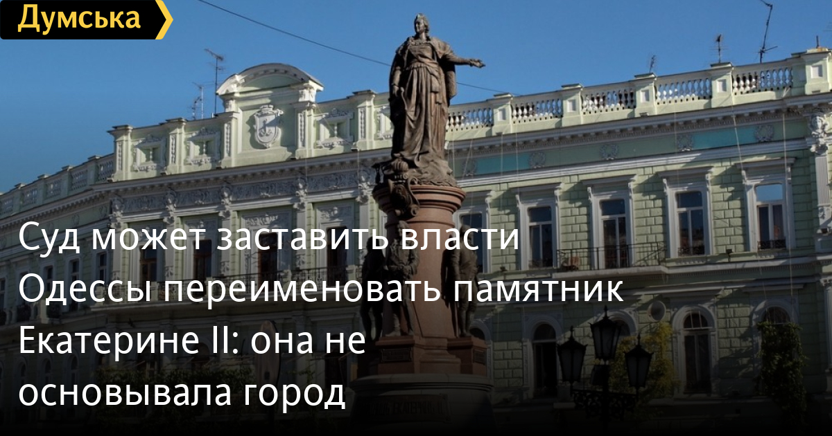 «Суд сделает вывод, что раз парламент и мэрия считают доказанным факт основания города в XV веке, то и скульптурная композиция на Екатерининской изображает не основателей Одессы, а совсем других лиц. Город обяжут переименовать монумент или в «Основателей Одесского порта» или в «Императрица Екатерина с фаворитами». Как-то так. Само собой, никто ничего сносить не планирует», — отметил наш собеседник.