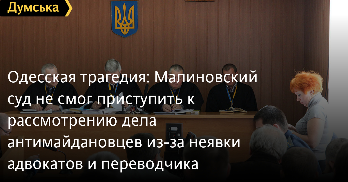 Малиновский районный суд Одессы не смог приступить к рассмотрению по существу дела о массовых беспорядках в центре города 2 мая 2014 года из-за неявки ряда участников процесса.