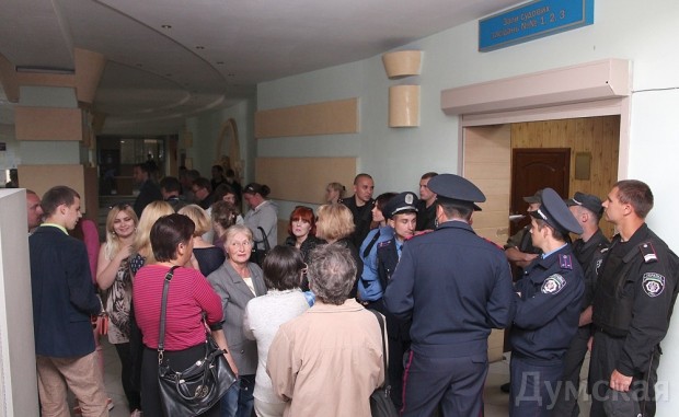 Как передает корреспондент «Думской», на первое заседание не пришли переводчик (среди фигурантов — два гражданина России, которые якобы не понимают по-украински), два адвоката и несколько обвиняемых, находящихся на свободе.