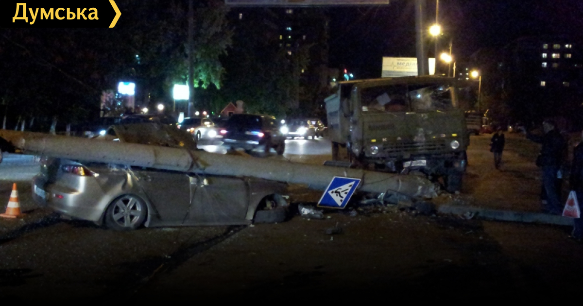 Тогда, напомним, КамАЗ столкнулся с «Мицубиси Ланцер», а потом снес столб, который упал на ту же иномарку. Жертв, как ни странно, не было.