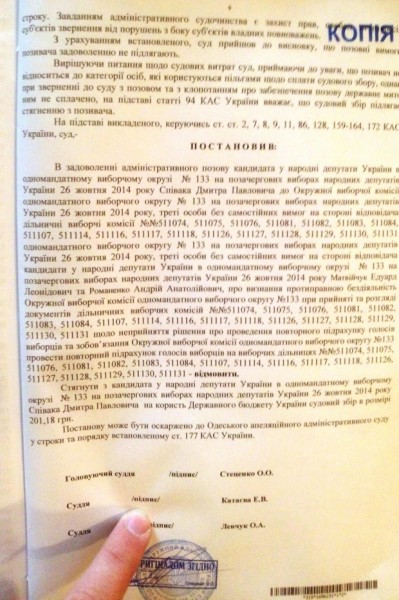Напомним, изначально данные экзит-полов свидетельствовали о том, что в 133 округе победу одержал кандидат от Блока Петра Порошенко Дмитрий Спивак: за него проголосовали 27,9% избирателей, пришедших на выборы.На втором месте Эдуард Матвийчук — 21,23%.