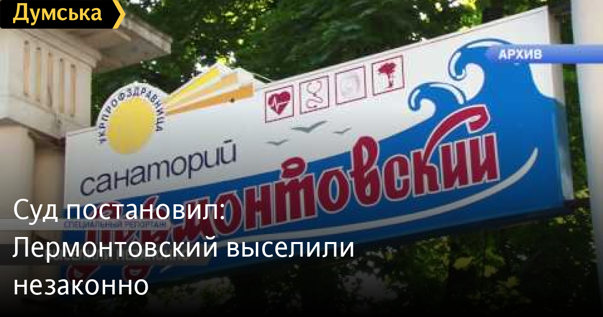 10 апреля Одесский хозяйственный суд вынес решение: санаторий «Лермонтовский» в 2015 году выселили незаконно СМЕРТЬ РОССИЙСКИМ ОККУПАНТАМ! Заметили ошибку? Выделяйте слова с ошибкой и нажимайте control-enter Думская ТВ. Сюжеты: