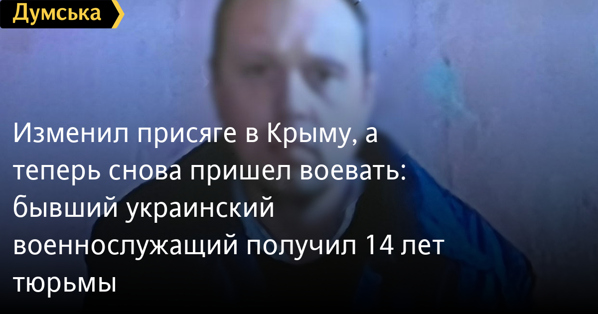 Бывший военнослужащий Вооруженных сил Украины, который в 2014 году остался в оккупированном Крыму и вернулся в Украину с армией Российской Федерации в 2022, приговорен к 14 годам лишения свободы.