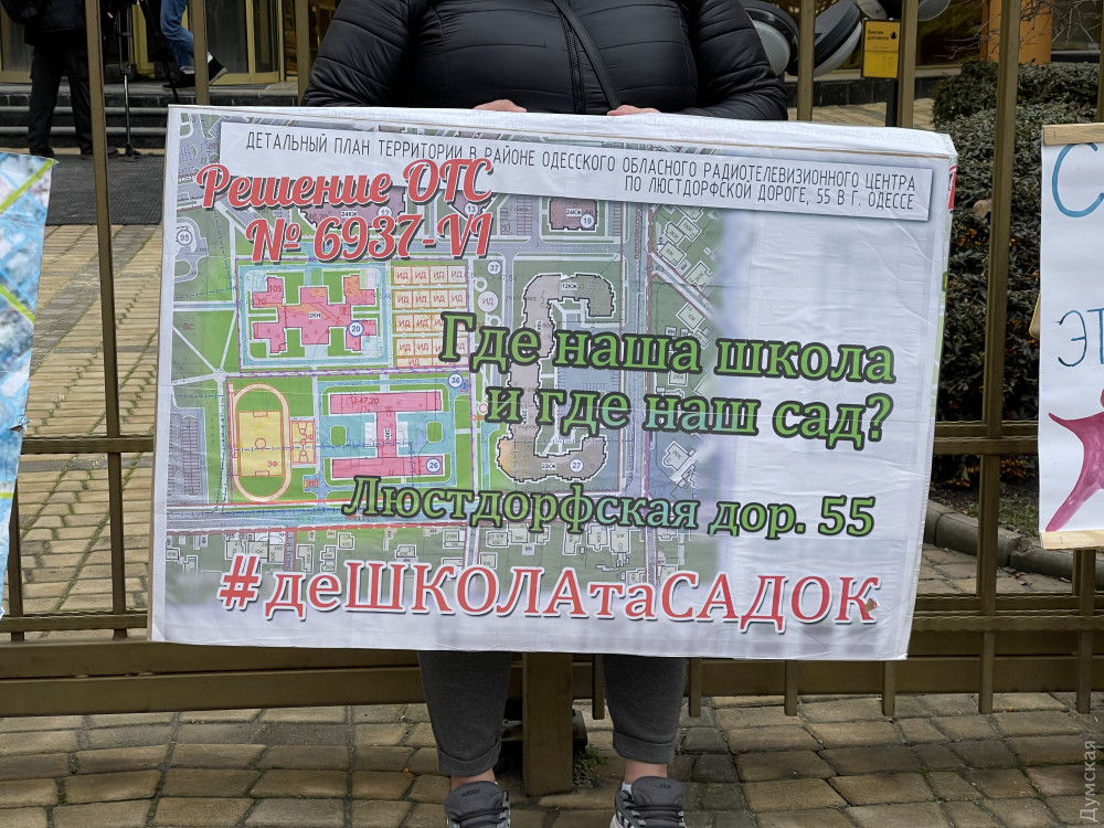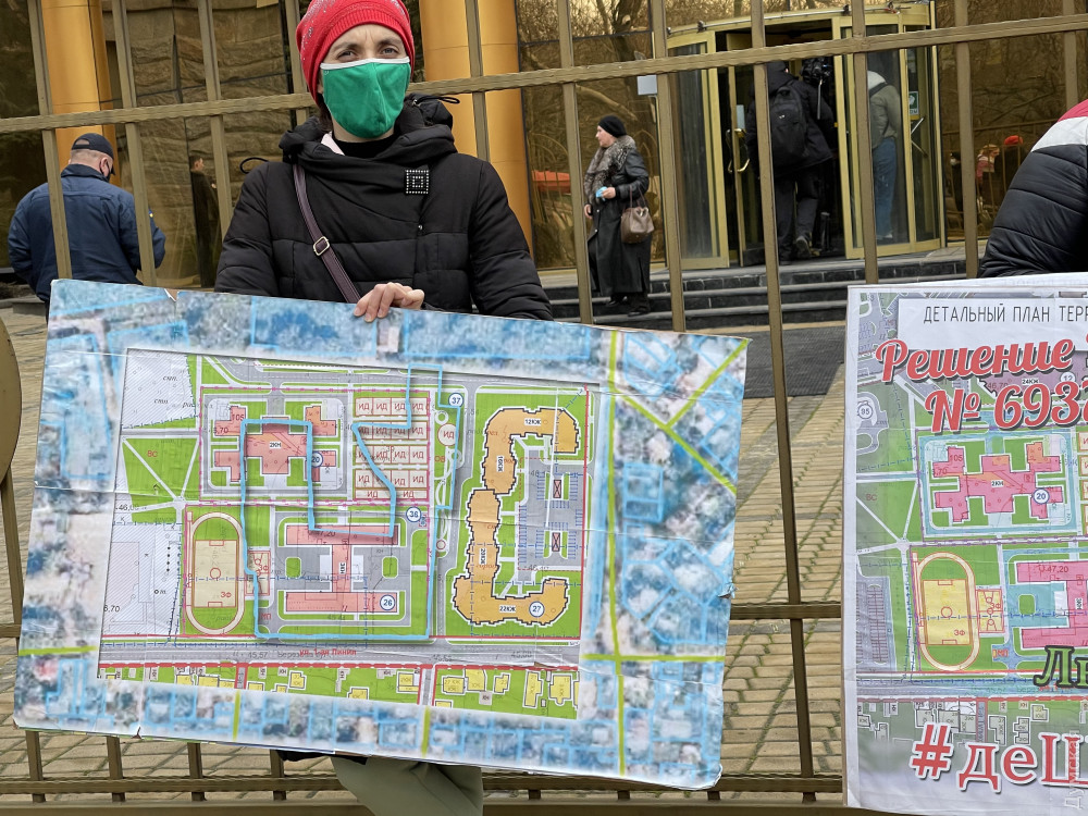 На заседание суда пришли с пикетом жители высотных жилкомплексов, выросших за последние годы в этом месте. По их словам, отсутствие школы вынуждает их возить детей в другие районы города, что, кроме всего прочего, вызывает пробки в районе площади Толбухина.