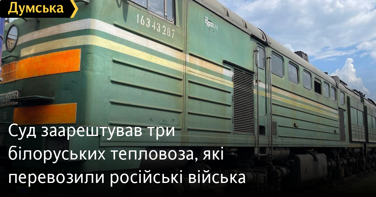 За матеріалами СБУ, суд заарештував три тепловози держпідприємства «Білоруська залізниця», які транспортували окупаційні підрозділи.