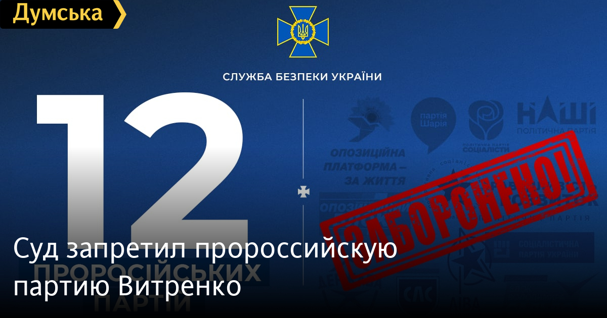 Как сообщает пресс-центр Службы безопасности Украины, это уже двенадцатая политическая сила, деятельность которой запрещена в Украине в судебном порядке.