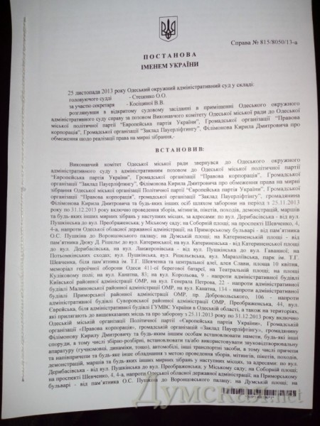 Как выяснилось, исполком городского совета действительно требовал вынести решение о запрете проведения акций не только ответчикам по делу, но и «каким-либо другим лицам». В таком случае запрет бы касался неограниченного круга лиц.