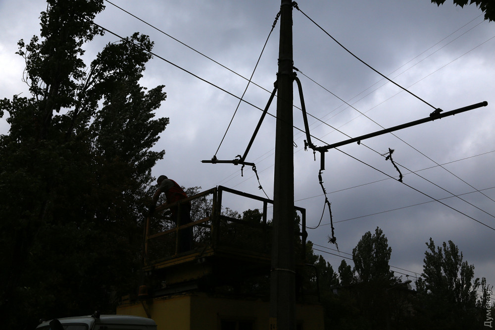 Об этом «Думской» сообщили ремонтники «Одесгорэлектротранса», которые устраняют последствия происшествия.