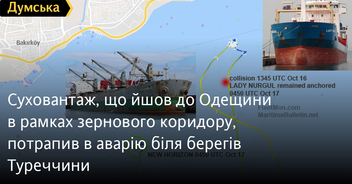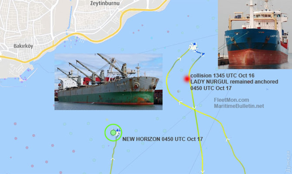 Суховантаж NEW HORIZON (прапор Панами), який прямував до Одеської області на навантаження продовольства в рамках «зернової ініціативи», зіткнувся з іншим вантажним судном у Мармуровому морі.