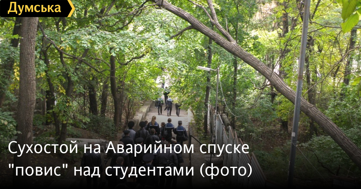 «Здравствуйте, меня зовут Сергей. Я студент строительной академии (ОГАСА, архитектура). Мне хотелось бы написать про Аварийный спуск (лестница) ведущий от улицы Балковской к строительной академии (ОГАСА) и морской академии (ОНМА) на улице Дюковской. Я наблюдаю это аварийное дерево уже полгода, а может и год. Вот не выдержал и написал вам. Хотелось бы, чтобы это дерево СПИЛИЛИ. Так как по этой лестнице в день ходят не меньше 200 человек в день: студенты, женщины, мужчины, мамы с детьми и пожилые люди».