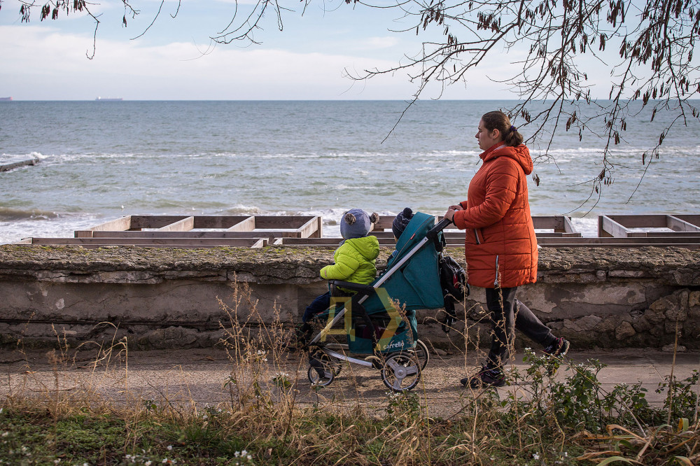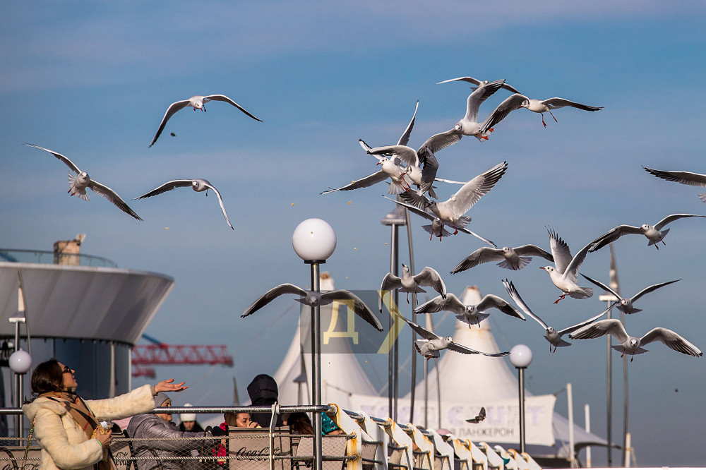 В третий день зимы, как ни в чем не бывало, работает даже канатная дорога — видавшие виды кабинки курсируют между Французским бульваром и Отрадой, правда пустые. Отдыхающим больше нравится передвигаться пешком либо на велосипедах.