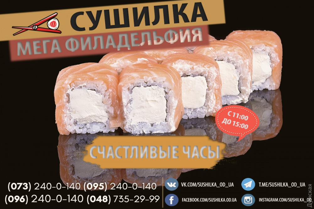Заказ можно сделать на сайте sushilka.od.ua или по телефонам: 073-240-0-140 (Lifecell); 095-240-0-140 (Vodafone); 096-240-0-140 (Kyivstar); 048-735-29-99 (городской).