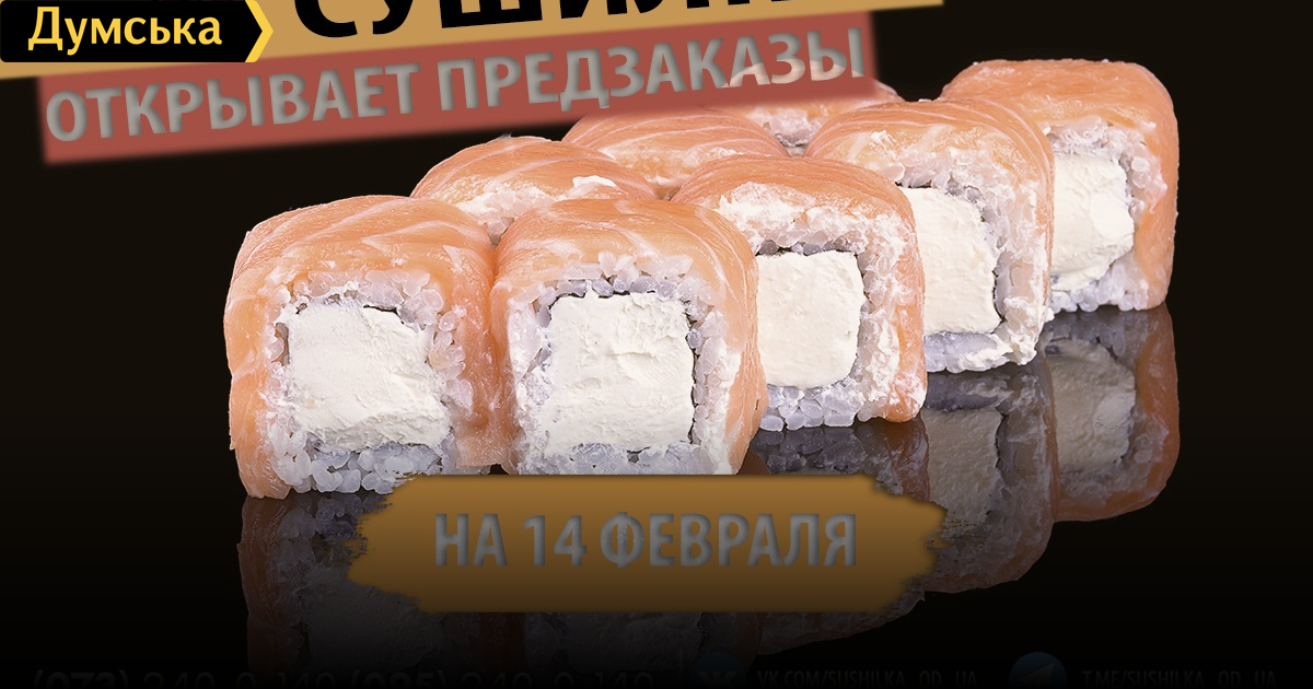 Приближается День влюбленных и служба доставки еды «Сушилка» открывает прием предзаказов. Сумма минимального заказа — 500 гривен. При заказе свыше 800 гривен сервис подарит эксклюзивный ролл. В меню будет добавлен праздничный ролл «Сердца Амура», который определенно порадует влюбленных одесситов. Время работы сервиса в праздничный день остается неизменным — с 11:00 до 22:45. Напоминаем, что «Сушилка» проводит конкурс в Instagram ко Дню влюбленных и приглашает всех принять участие, получив возможность выиграть сертификат на 500 грн в «Сушилке». Сделать заказ и предзаказ можно на сайте sushilka.od.ua, или по телефонам: 073-240-0-140; 095-240-0-140; 096-240-0-140; 048-735-29-99. СМЕРТЬ РОСІЙСЬКИМ ОКУПАНТАМ! Помітили помилку? Виділяйте слова з помилкою та натискайте control-enter |