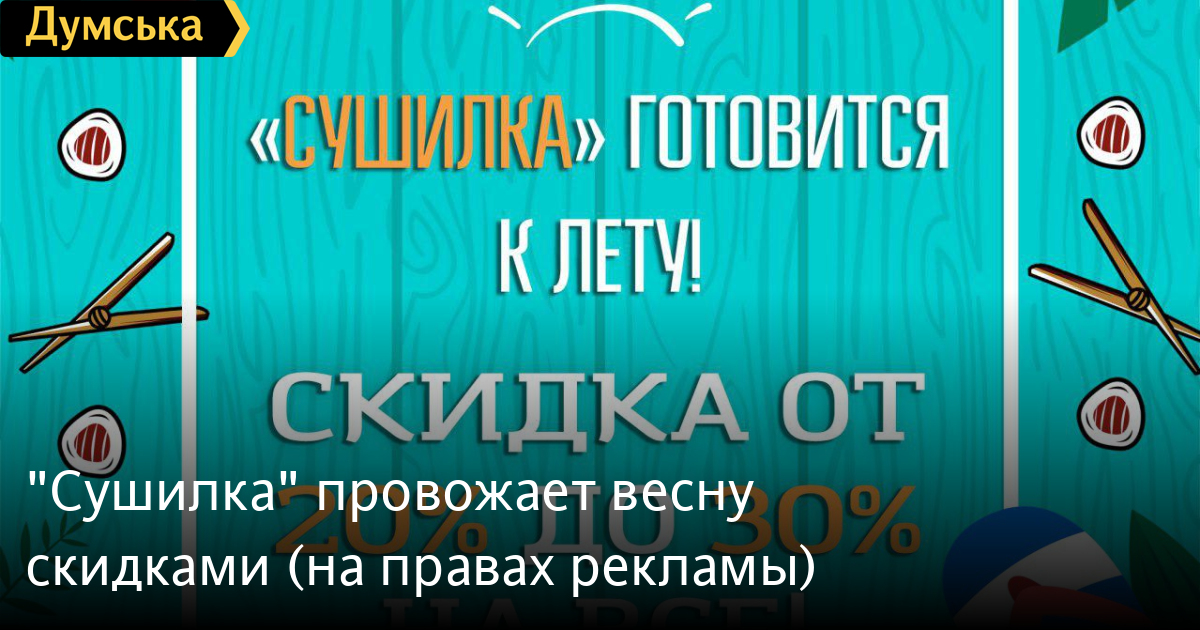 Весна официально сдает свои позиции стремительно приближающемуся лету, потому служба доставки еды «Сушилка» решила порадовать клиентов вкусными скидками. Так, с 27 по 30 мая включительно «Сушилка» дарит скидку от 20% до 30% на все меню. Напомним, ранее сервис внес масштабные изменения в меню, обновив роллы, лапшу, блюда из риса, а также добавив новые сеты и пиццу. Заказ можно сделать на сайте sushilka.od.ua или по телефонам: 073-240-0-140; 095-240-0-140; 096-240-0-140; 048-735-29-99. СМЕРТЬ РОССИЙСКИМ ОККУПАНТАМ! Заметили ошибку? Выделяйте слова с ошибкой и нажимайте control-enter |
