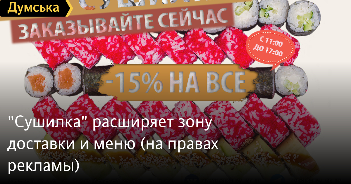 Служба доставки суши «Сушилка» от «Одесса как она есть» расширила зону доставки. Отныне возить суши будут не только в центр города, на Таирова, Фонтан, Молдаванку, Черемушки, Бугаевку и Слободку, но и в Черноморку, Червоный хутор, Совиньон и поселок Мизикевича. Также в настоящее время проходит акция, согласно которой клиенты получают скидку 15% при совершении заказа в период с 11:00 до 17:00. Скидка распространяется на все меню. Кроме того, продолжает действовать акция «Ролл за фотоотзыв». Вам необходимо всего лишь сделать фото вашего заказа вместе с чеком, указать номер карты Сушилкина и номер заказа, а после опубликовать в нашей группе в социальной сети Facebook или Instagram. После этого вы получите ролл бесплатно при следующем заказе. Также «Сушилка» позаботилась об именинниках — в свой День рождения вы получите скидку 20% в подарок при предъявлении паспорта. К слову, в меню добавили несколько новых роллов. Подробно ознакомиться с ассортиментом и правилами доставки можно на сайте sushilka.od.ua. Совершить заказ можно по телефонам: 073-240-0-140; 095-240-0-140; 096-240-0-140; 048-735-29-99. СМЕРТЬ РОССИЙСКИМ ОККУПАНТАМ! Заметили ошибку? Выделяйте слова с ошибкой и нажимайте control-enter |