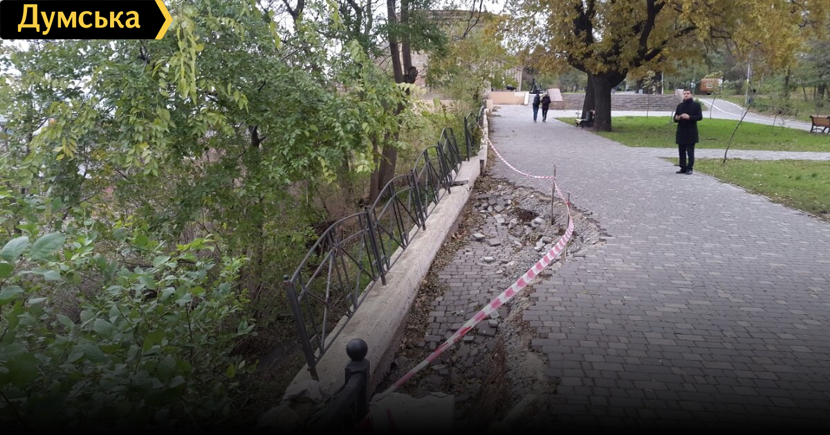 Серьезный оползень развивается на Суворовской аллее парка Шевченко, передает корреспондент «Думской».