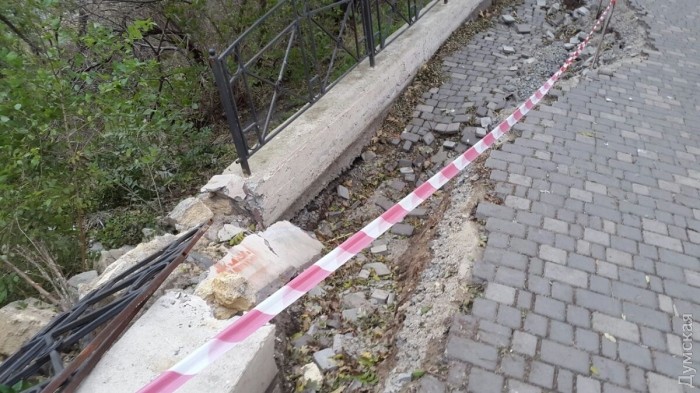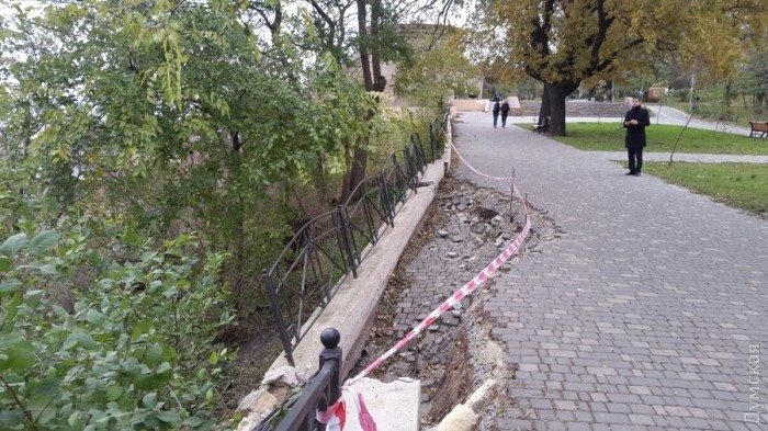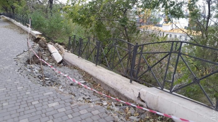 Пока он затронул участок длиной примерно 10 метров возле башни Карантина. Поврежден парапет с декоративной оградой и осыпалась плитка. Опасный геологический процесс продолжается.