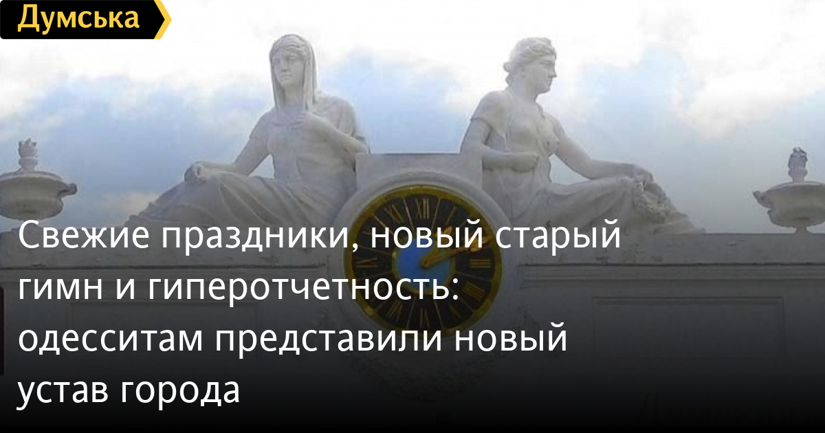 Свіжі свята, новий старий гімн та гіперзвітність: одеситам представили новий статут містаНову доопрацьовану редакцію Статуту Одеси презентували городянам. Як повідомили у міськраді, документ готували понад три роки. Це вже друга спроба поновити головний документ громади. Докладний аналіз першої редакції проєкту ми робили тут, а другий — тут. У мерії запевняють, що документ гарантує розширені можливості для городян (громадські слухання, місцеві ініціативи, електронні петиції та консультації), чітко прописану підзвітність чиновників та депутатів, відкритість та прозорість роботи влади та багато інших плюшок. Чи це так насправді? БЕЗ ІМПЕРСЬКОСТІ ТА ГУГЛ-ТРАСЛЕЙТУ З преамбули та й з тексту взагалі практично розпеченим залізом випалили згадки про Катерину ІІ та іншу імперськість, яка була така властива прийнятому за Костусєва статуту. «Одеса – центр міської агломерації, адміністративний центр Одеської області, місто з більш ніж мільйонним населенням, яке є одним із ключових економічних, науково-освітніх, культурних, курортно-туристичних, транспортних центрів України. Одеса має один з найбільших морських портів на Чорному морі. Традиції містобудування в межах сучасної Одеси йдуть в епоху. (1311) і археологічні матеріали вказують на існування на березі сучасної Одеської затоки факторії (торгового пункту) Джинестра. на весь світ і отримав Одесу почесне звання «Місто-герой». Ще документ позбавився суржику та гугл-транслейту, це одразу впадає у вічі. «Понад два роки над цим документом працювала наша робоча група, — говорить депутат міськради Петро Обухов. — Нарешті буде врегульовано питання громадського контролю. З’явиться можливість збирати підписи за проведення громадських слухань онлайн. Нарешті в міста з’явиться гімн державною мовою. І на офіційному рівні буде визнано безперервне існування тут населеного пункту, починаючи з 1311 року, коли тут була факторія Джинестра. Під час роботи над статутом Верховна Рада ухвалила зміни до закону, які запроваджують нові вимоги до статутів міст. Частину статей довелося переписувати, щоб відповідати закону. Підозрюю, що Одеса може стати першим містом в Україні, яке ухвалить новий статут за цим законом». З НОВИМ СТАРИМ ГІМНОМ Отже, що нового нас чекає? Почнемо з символічного: зміниться гімн. Щоправда, назвати його новою мовою не повертається. Замість арії Тоні з оперети «Біла акація» головною піснею стане «Край Чорного моря» на слова Семена Кірсанова та музику Модеста Табачникова у перекладі українською Сергія Осоки: Те місто я бачив не раз уві сні, Грайливе, солоне, ігристе, Край Чорного моря відкрилось мені В квітучих акаціях місто Край Чорного моря! Те море, в якому я плив і тонув, Той берег, ясний і погожий. Повітрям, яке у дитинстві вдихнув, Напитися й досі не можу. Край Чорного моря! Повік не забуду бульвар і маяк, вогні пароплавів, як свічі, і лавку, де ми, о кохана моя, поглянули вперше у вічі – Край Чорного моря! Земля, до якої мій друг-одесит тулився, обпалений боєм. В зажурі над ним Батьківщина стоїть, і назване місто героєм – Край Чорного моря! Життя зостається прекрасним завжди, Грайливе, солоне, іскристе. І нас щовесни повертає сюди, В Одесу, у сонячне місто. Край Чорного моря! НОВІ СВЯТА Статус міських свят, які щорічно відзначатиму, отримали п'ять дат: - 1 квітня – День гумору; - 10 квіт