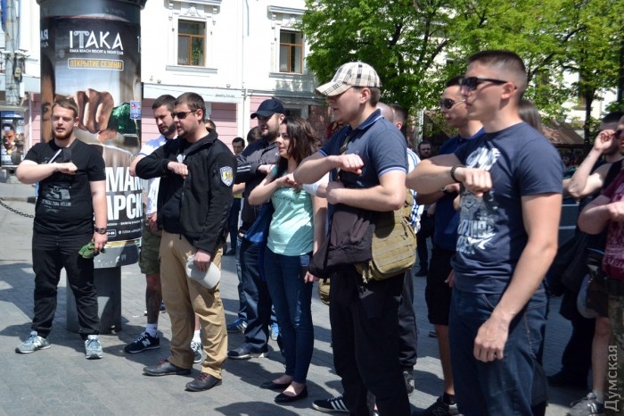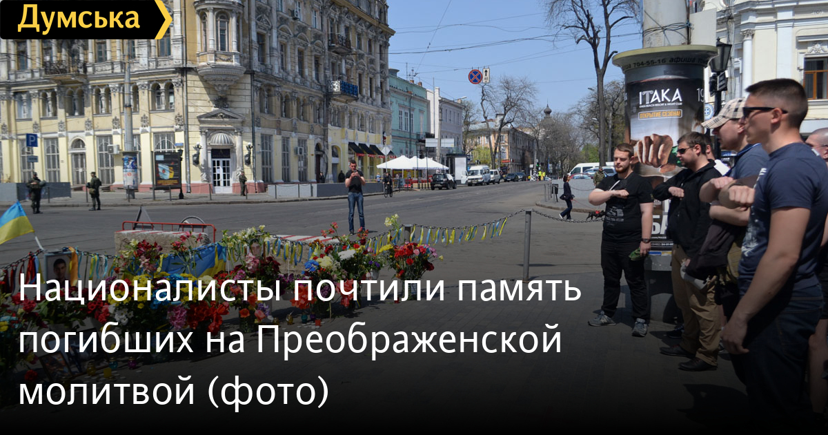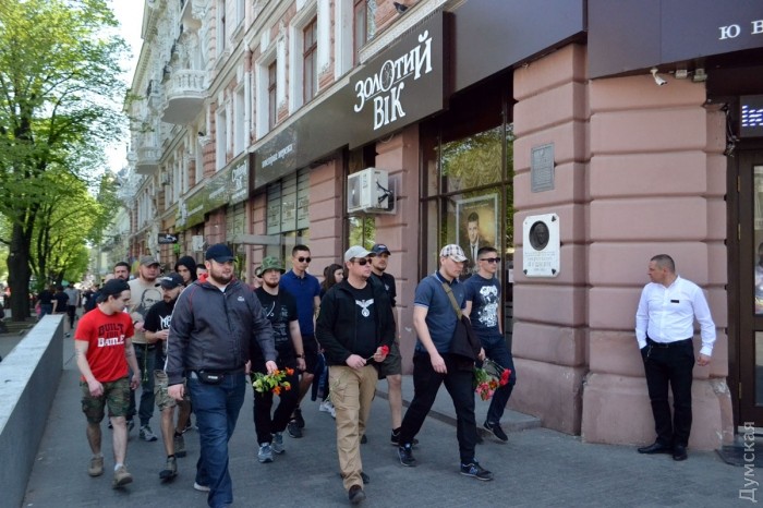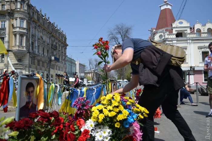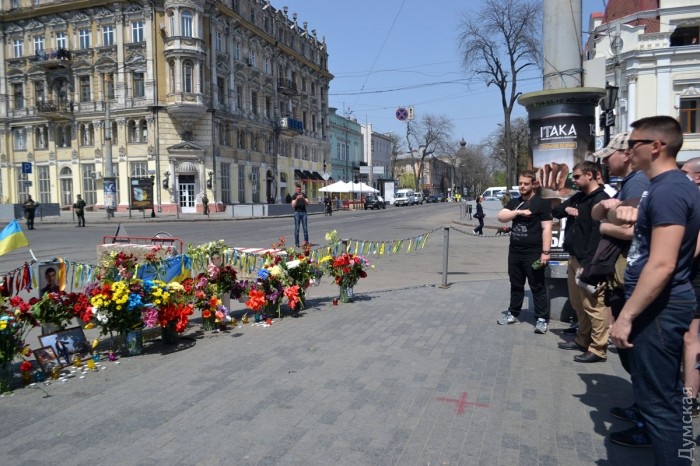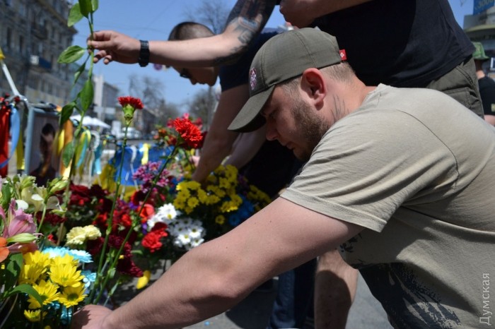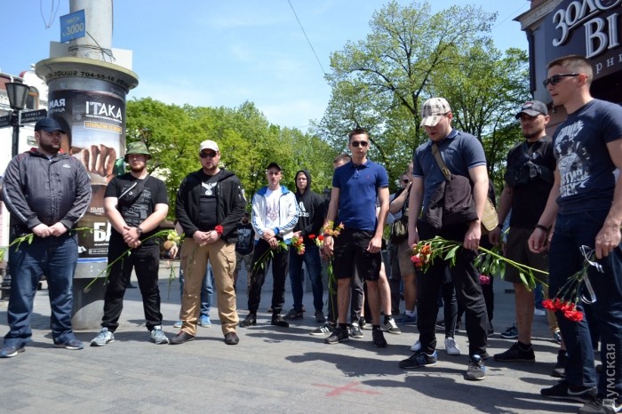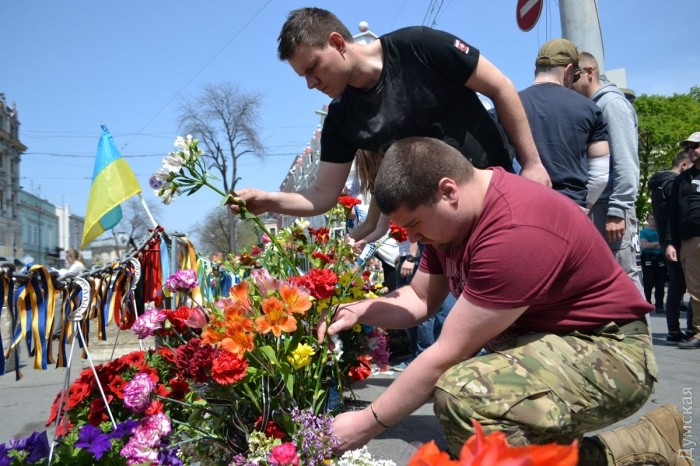 Несколько десятков активистов ВО «Свобода» возложили цветы на углу улиц Преображенской и Дерибасовской, где 2 мая 2014 года погибли патриоты Игорь Иванов и Андрей Бирюков, передает корреспондент «Думской». По словам активиста «Свободы» Константина Васильца, сегодня для одесских «свободовцев» особенный день, поэтому они пришли отдельно от других организаций. «Для нас этот день особенный, потому что у нас было трое раненых, и люди, которые погибли, — не жертвы, а настоящие герои, они погибли за нашу победу», — заявил Константин Василец. После возложения цветов, «свободовцы» исполнили «Молитву украинского националиста» и отправились на Куликово поле — «убедиться, что пророссийские активисты не устраивают никаких провокаций». Фото — Андрей Колисниченко СМЕРТЬ РОСІЙСЬКИМ ОКУПАНТАМ! Помітили помилку? Виділяйте слова з помилкою та натискайте control-enter