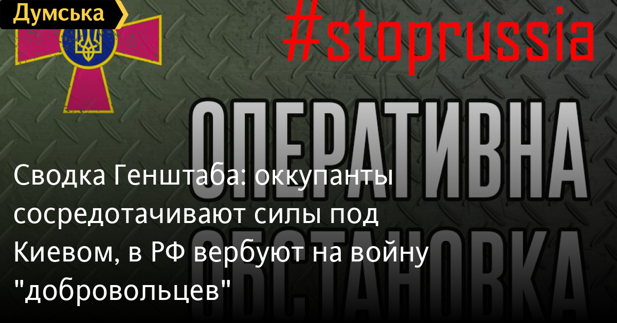 «Оккупационное командование прилагает максимум усилий для удержания под контролем временно занятых территорий Украины», — сообщили в Генштабе, добавив, что захватчики не оставляют планов окружить столицу и пойти на штурм Киева.