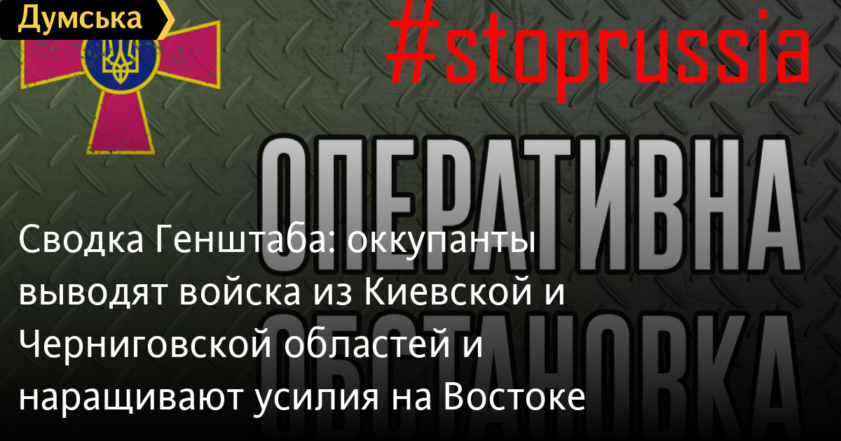 Как сообщили в Генштабе, стратегических целей противник не достиг, фиксируется выведение отдельных подразделений оккупантов с территории Киевской и Черниговской областей.