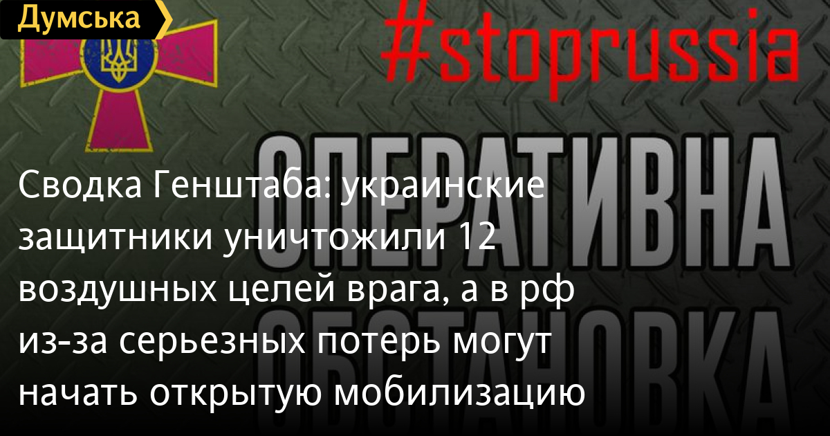 В Генштабе полагают, что из-за серьезных потерь личного состава, которые понес враг, в рф будут внесены изменения в законодательство и начата открытая мобилизация для продолжения затяжной, изнурительной войны.