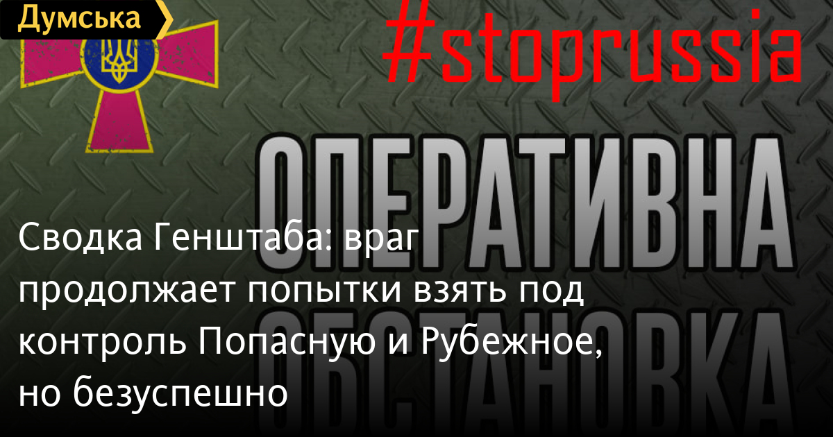 На донецком направлении основные усилия врага продолжают сосредотачиваться на установлении полного контроля над населенными пунктами Рубежное и Попасная, и продвижении в направлении населенных пунктов Лиман и Славянск.