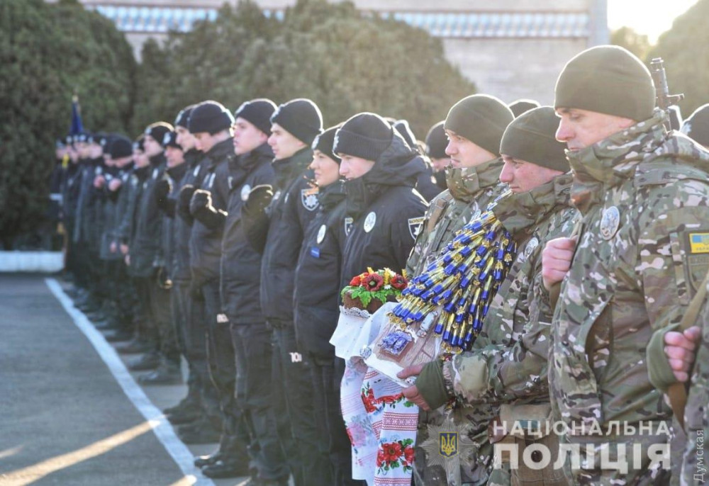 В дорогу правоохранителей провожало руководство, родные, друзья, представители власти и духовенства, волонтеры и курсанты Одесского госуниверситета внутренних дел.