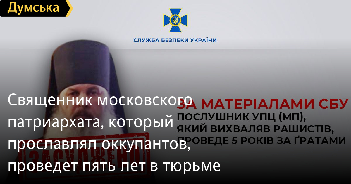 Священик московського патріархату, який прославляв окупантів, проведе п`ять років у в`язниціСуд засудив до п'яти років позбавлення волі з конфіскацією майна послушника Свято-Успенської Почаївської лаври в Тернопільській області, який робив проросійські публікації в соцмережах. У СБУ повідомили, що після початку повномасштабного вторгнення, священик став активно підтримувати загарбників — хвалив російське керівництво і дискредитував Сили оборони України. Під час обшуку в агітатора вилучили мобільні телефони, з яких він публікував пости. Його судили за статтями 436-2 і 111-1 (виправдання, заперечення, визнання правомірною російської агресії та прославляння її учасників, колабораційна діяльність). СМЕРТЬ РОСІЙСЬКИМ ОКУПАНТАМ! Помітили помилку? Виділяйте слова з помилкою та натискайте control-enter |