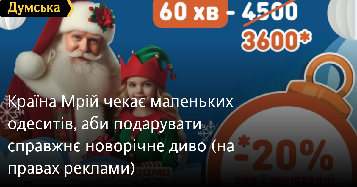 Країна Мрій чекає маленьких одеситів, аби подарувати справжнє новорічне диво (на правах реклами)Свята наближаються! Хочете подарувати своїй малечі справжнє новорічне диво? Країна Мрій пропонує чарівні новорічні привітання, які створять атмосферу свята будь-де! На вас чекають: привітання від Санти або ж Миколая та їхніх помічників, цікаві конкурси та веселі естафети, солодкі призи для кожного, фото з улюбленими героями, масштабні запальні флешмоби та ексклюзивна новорічна вечірка. І гори щирих вражень та емоцій! Подаруйте дітям незабутнє свято у найчарівніший час року! Бронюйте новорічну програму вже зараз — до кінця листопада діє святкова знижка! +380 50 331 77 15 СМЕРТЬ РОСІЙСЬКИМ ОКУПАНТАМ! Помітили помилку? Виділяйте слова з помилкою та натискайте control-enter |