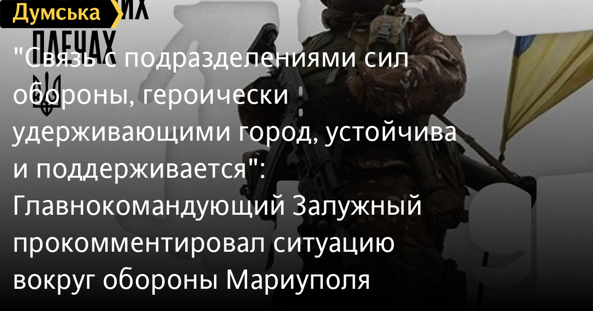 «Связь с подразделениями сил обороны, героически удерживающими город, устойчива и поддерживается, — сообщил Валерий Залужный в Facebook. — Мы делаем все возможное и невозможное для Победы и сохранения жизни личного состава и мирных жителей во всех направлениях».