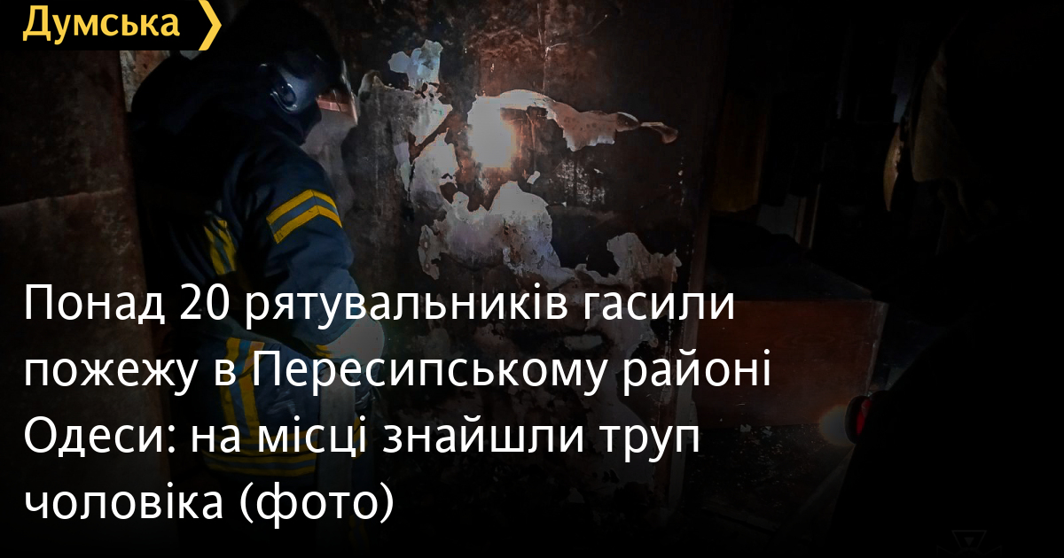 Понад 20 рятувальників гасили пожежу в Пересипському районі Одеси: на місці знайшли труп чоловікаЧоловік 1970 року народження загинув унаслідок пожежі, яка спалахнула в його квартирі в ніч на 16 січня. Як повідомили у пресслужбі ДСНС Одеської області, прибувши за викликом на вулицю Отамана Чепіги, рятувальники виявили загоряння майна у квартирі на другому поверсі двоповерхового будинку. Вогонь вдалося швидко ліквідувати, але на місці події знайшли труп господаря житла. Що стало причиною пожежі, поки невідомо. До ліквідації залучали 22 рятувальників та чотири одиниці техніки. Помітили помилку? Виділяйте слова з помилкою та натискайте control-enter Новини по цій темі: 9 жовтня 2025: Нічний удар по Одеській області: постраждали п'ятеро людей, понад 30 тисяч абонентів залишилися без світла 19 серпня 2025: У будівлі коледжу в центрі Одеси виявили труп невідомого 10 червня 2025: Масштабна пожежа у центрі Одеси: ймовірні винуватці спустилися по дереву з третього поверху та намагалися втекти (фото, відео, оновлено) 10 червня 2025: Одесу атакують дрони: дісталося пологовому та житловим будинкам і станції швидкої допомоги (оновлюється, фото) |