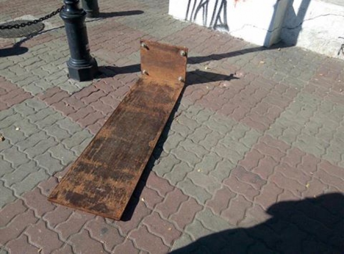 «Новая табличка с QR-кодом весом в 150 килограммов (!) была «торжественно» вырвана из асфальта», — говорится в сообщении.