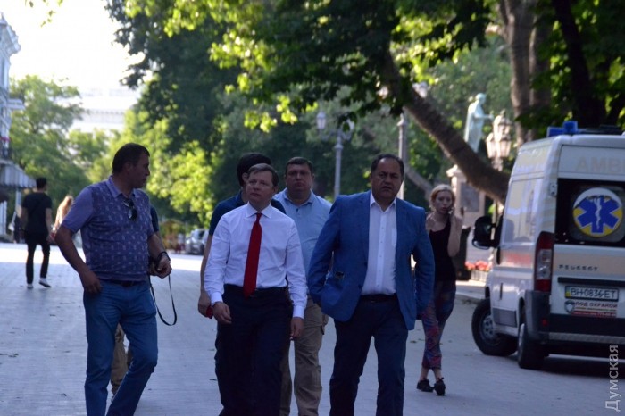 Тягнибок шел к гостинице «Лондонская», где у него была запланирована беседа со сторонниками, а Ляшко просто гулял.