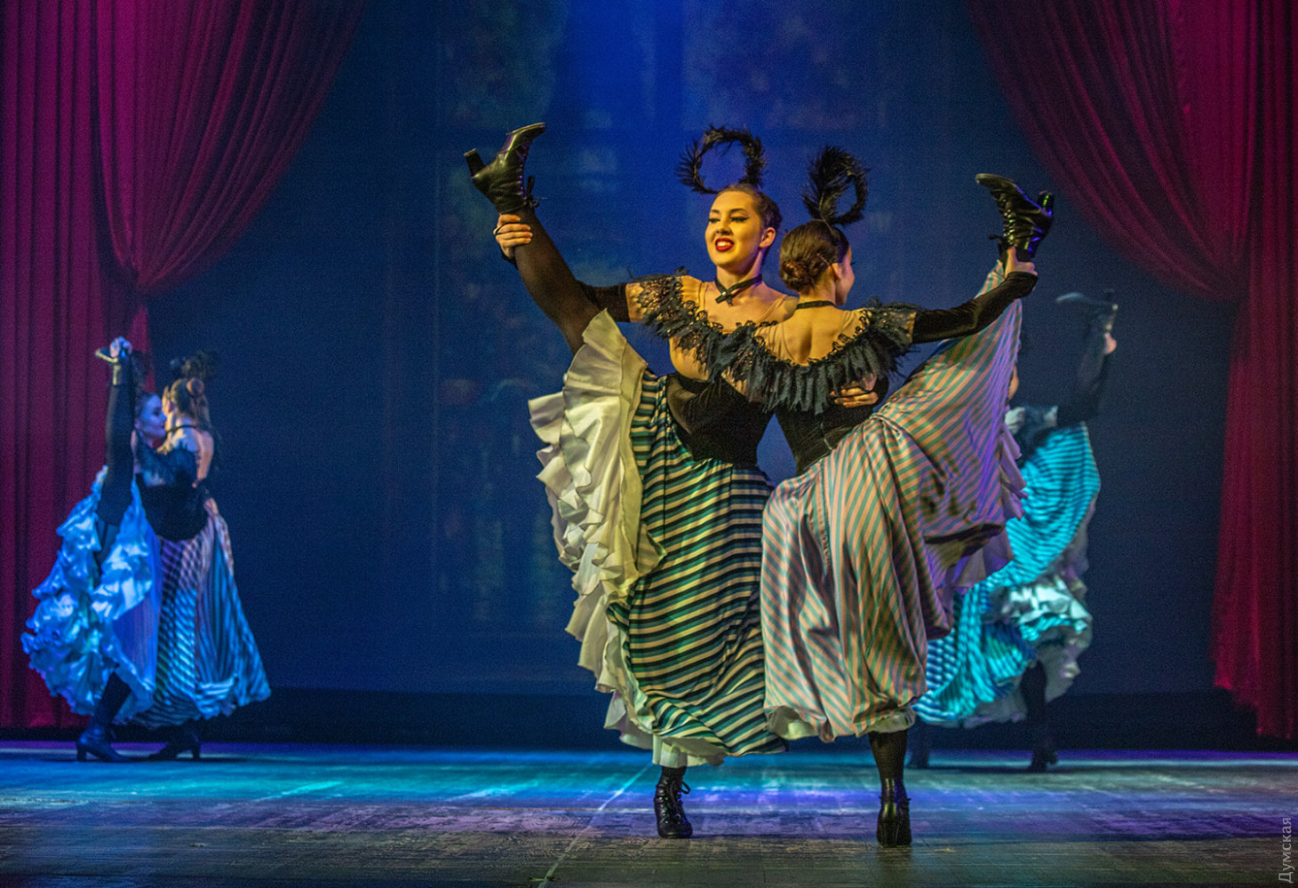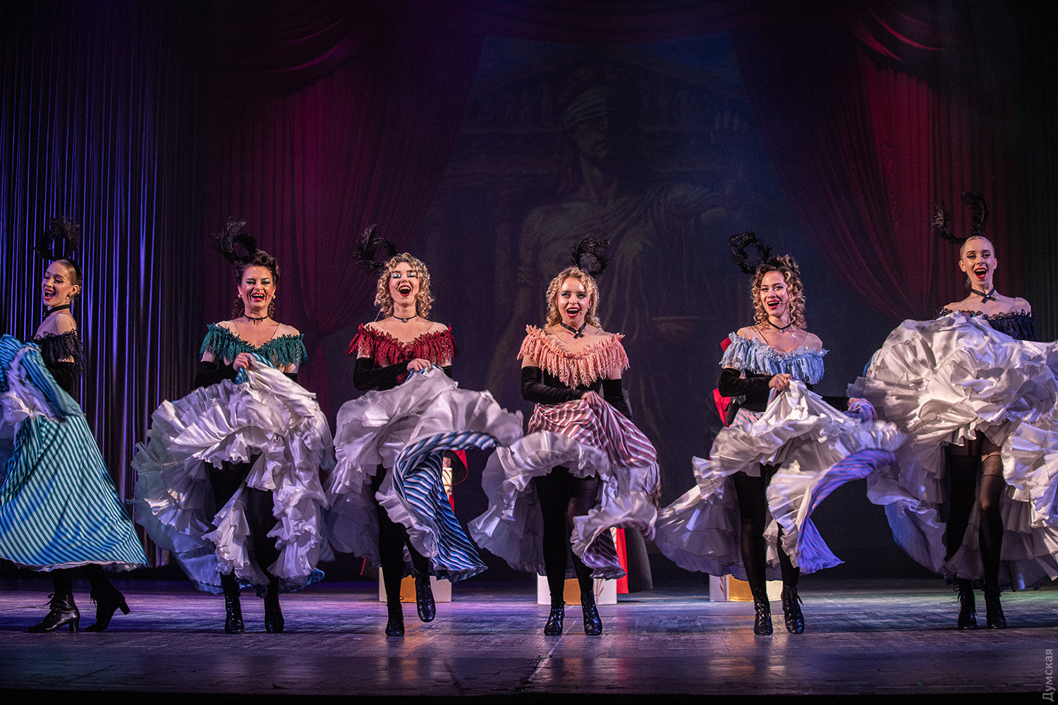 Останньою прем’єрою 2025 року в одеській Музкомедії став «Канкан» Коула Портера на лібрето Ейба Берроуза. Бродвейська постановка 1953 року увійшла в історію, а для нашої знадобився переклад Сергія Аркуші (всі співи в оригіналі, а розмовні діалоги українською) та виплати щодо авторських прав. Оскільки зйомка цієї вистави суворо заборонена британським Законом про авторське право 1988 року, читачам «Думської» доведеться обійтися без відеофрагментів і скласти своє уявлення про «Канкан» з наших слів, світлин, а ще краще до театру піти, це тягне на подію сезону. Події відбуваєються у Парижі наприкінці ХІХ століття. Епоха модернізму, зародження радіо, кіно і кабаре, але жінки все ще перуть руками, заробляють цим на життя. А опісля трудової днини несамовито танцюють в кабаре, задираючи прегарні ніжки та купують вино своїм коханим, невизнаним геніям Монмартру. Богема створює чудернацькі картини та неоковирні скульптури (таке нещодавно показали й у нашому місті на виставці «Скульптурний салон», Париж відпочиває). Як це продати? Скульптор-невдаха Борис (лауреат міжнародних конкурсів вокалістів Олександр Кабаков) вирішає скористатися цікавістю провідного газетного критика до своєї подружки, гарненької пралі. Заслужена артистка України Наталя Ткачук грає свою Клодін справжньою француженкою, яка любить перш за все себе та розкіш, і для неї важливіше, що впливовий Гілер Жуссак (Михайло Ігнатов) одягне її саму, немов лялечку! У нашому суспільстві вже не так прислухаються до думки критиків, а шкода, Жуссак майстерно троллить Бориса, опублікувавши статтю про «недостатнє володіння матеріалом» і власне «повне розчарування», а після кумедної дуелі обіцяє все виправити рецензією протилежного змісту, аби продалися всі істукани… Слідкуйте за реакцією поціновувача мистецтва месьє Поля Бар’єра (заслужений артист України Сергій Мільков), і в вас не залишиться сумнівів у тому, що богемний планктон, хоч і веде цікавий і необтяжливий спосіб життя, навряд чи досягне успіху. За сюжетом, канкан ще вважається вкрай непристойним видовищем, а маленькі пралі, які шукають себе в цьому жанрі, опиняються в залі суду, де їх шпетять за розпусну поведінку. Надто шаленіє молодий і амбітний суддя Арістід Форестьє (заслужений артист України Володимир Кондратьєв), він ладен розорити мадемуазель Симону Пісташ (заслужена артистка України Ірина Ковальська), хазяйку кабаре. Вона заносить його ім’я до довжелезного списку потрібних людей, питаючи, чим може зацікавити, може, грішми? Але законник несподівано для самого себе закохується в неї… Тут треба згадати, що сам Коул Портер, автор музики та віршів, замолоду вивчав на вимогу старших юриспруденцію в Єльському університеті. Лише в тридцятирічному віці став систематично займатися композиторською діяльністю. В Арістіді є трошечки від нього, цей розумник сипле юридичними термінами, проте не може обґрунтувати, з якого це дива закон має регламентувати, як високо дівчина може задирати ноги в танці. Від канкану всі щасливі, і ті, хто танцює, і ті, хто дивляться! «А щастя не може бути незаконним», — доводить Пісташ. Та справа не в самому канкані, він лише частина богемної атмосфери Парижу, і Пісташ неймовірно чуттєво співає гімн цьому дивовижному місту, I Love Paris, саме він стає кульмінацією вистави. А що ж скандальний канкан? За ньог