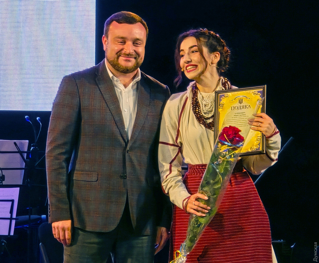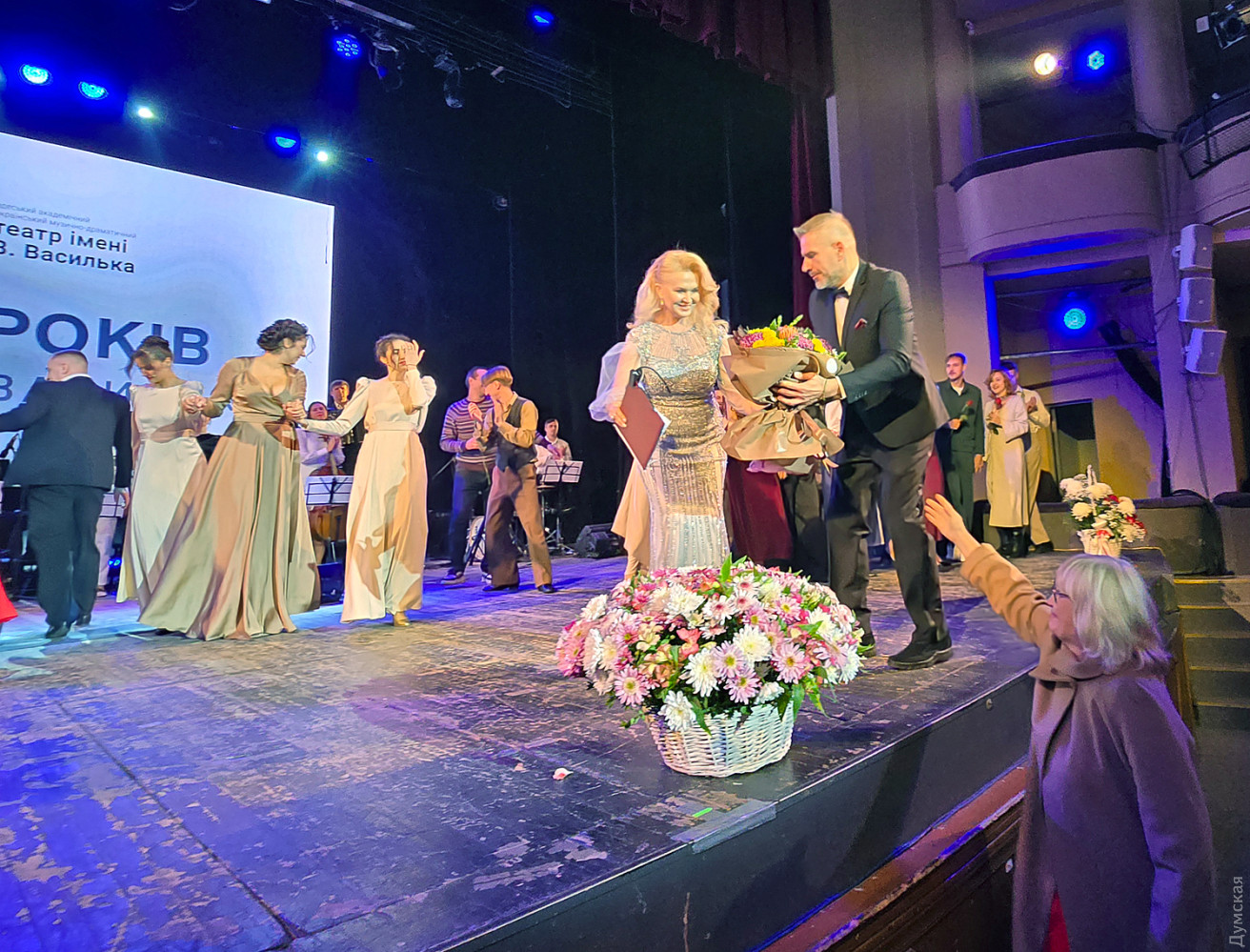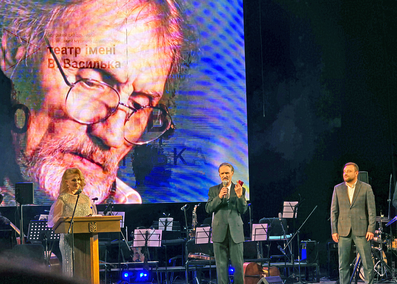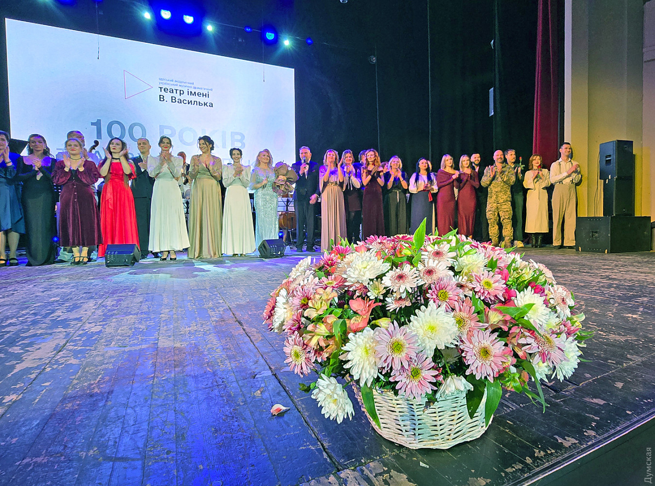 Святковою концертною програмою у залі Одеського академічного українського музично-драматичного театру імені Василя Василька відзначили його сторічний ювілей (погодьтеся, таке буває раз у житті, двохсотріччя ми з вами не побачимо). Вели церемонію нагородження та концерт народна артистка України Діана Мала та Анатолій Головань. На сцені виступали артисти театру під живий супровід оркестру на чолі з маестро Вадимом Бесарабом, джазові ноти додала Анастасія Букіна. Також виступили ансамбль «Чорноморські візерунки» коледжу мистецтв імені Данькевича та центр військово-музичного мистецтва ВМС України під орудою Любомира Сукеника. Перш за все повідомимо радісну новину: віднині Ігор Геращенко має звання народного артиста України. Колектив театру отримав численні нагороди, подяки від Верховної Ради, обласної та міської влади. Серед нагороджених – артисти, музиканти та фахівці, чий внесок протягом багатьох років формує творче обличчя театру. Серед подарунків – сертифікати на придбання ударної установки та освітлювального обладнання. Виконуючий обов’язки міського голови Одеси Ігор Коваль нагадав, що театр зазвичай починається з гардеробу, однак зазначив: у випадку з українським театром імені Василька все починається з його директорки. «За вашого керівництва театр став осередком високого мистецтва, духовності, – звернувся він до Юлії Пивоварової. – Завдяки вашій невтомній праці театр впевнено поєднує традиції та новаторство, створює вистави, які зворушують серця, формують естетичний смак сучасного глядача. Формат театру став символом незламності нашої культури. Нехай друге століття буде сповнене мистецьких відкриттів та вдячних оплесків». Зараз у лавах ЗСУ служать актори Павло Чирва, Сергій Куда, Денис Гранчак, балетмейстер Павло Івлюшкин та ще кілька працівників театру. На щастя, Павло спромігся поставити святковий концерт і станцювати на сцені карколомне соло, а Денис прочитав власний вірш: … Чому так відбувається сьогодні?