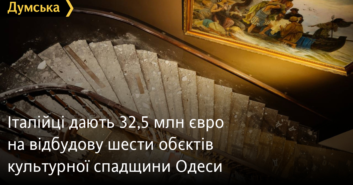 Італійці дають 32,5 млн євро на відбудову шести об’єктів культурної спадщини Одеси32,5 млн євро на відбудову шести об’єктів культурної спадщини Одеси виділить Італія у якості безповоротної допомоги. Про це стало відомо під час Конференції з питань відновлення України (URC2025), яка відбулась у Римі. Мова йде про реставрацію знакових об’єктів, які зазнали пошкоджень унаслідок збройної агресії рф. Серед них — Одеський національний художній музей, Одеський музей Західного і Східного мистецтва, Одеська обласна філармонія імені Давида Ойстраха, Одеський літературний музей, Будинок Зонтага, Палац Одружень. «Угода передбачатиме проведення комплексних реставраційних робіт, підвищення рівня безпеки та енергоефективності будівель, адаптацію до потреб маломобільних груп населення, а також оновлення інженерної інфраструктури», — повідомили в міністерстві. СМЕРТЬ РОСІЙСЬКИМ ОКУПАНТАМ! Помітили помилку? Виділяйте слова з помилкою та натискайте control-enter |