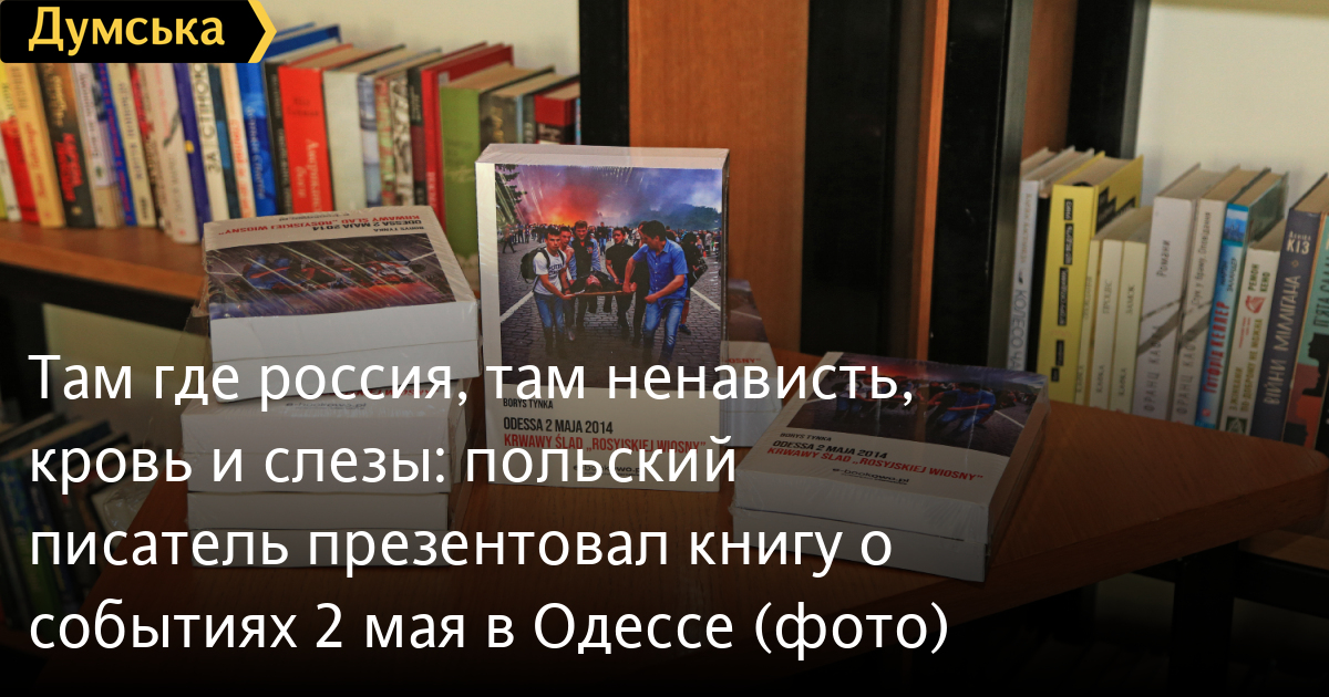 «Это было одно из первых российских ИПСО про так называемую «Одесскую Хатынь». Книга Бориса реконструирует события и полностью опровергает эту ложь, в которую много поляков поверили, не понимая сути событий в Одессе. Поэтому выход книги очень важен», — отметил Сергей Гуцалюк.